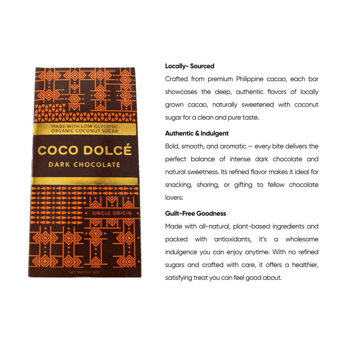 Coco Dolcé’s 65% Dark Chocolate is bold, smooth, and made for serious chocolate lovers. Packed with antioxidants, made from premium cacao, and sweetened with coconut sugar—it's a clean, plant-based treat for health-conscious snacking.