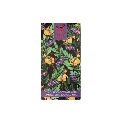 Theo and Philo - 65% Dark Chocolate with Mango, Chili and Cacao Nibs 45g